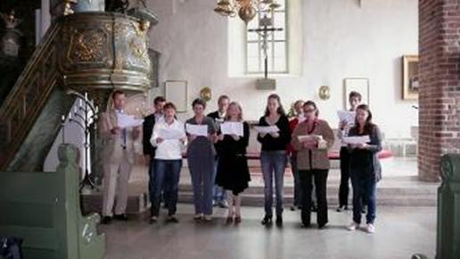 Sukukuoron repertuaarista löytyi myös latinaa, mikä sopi hyvin keskiaikaiseen kivikirkkoon.