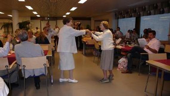 Virallisen vuosikokouksen jälkeen vietettiin iltaa kurssikeskus Petreassa. Kokouksen iäkkäimmät osallistujat, 83 v. ja 95 v., näyttivät mallia, kuinka vanhan ajan tanssi sujui.